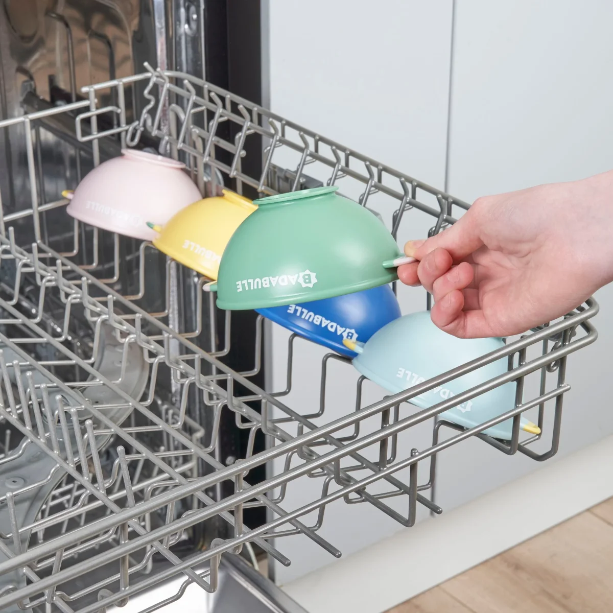 • 5 bols de 330ml avec 5 couvercles hermétiques et 1 ventouse anti-dérapante