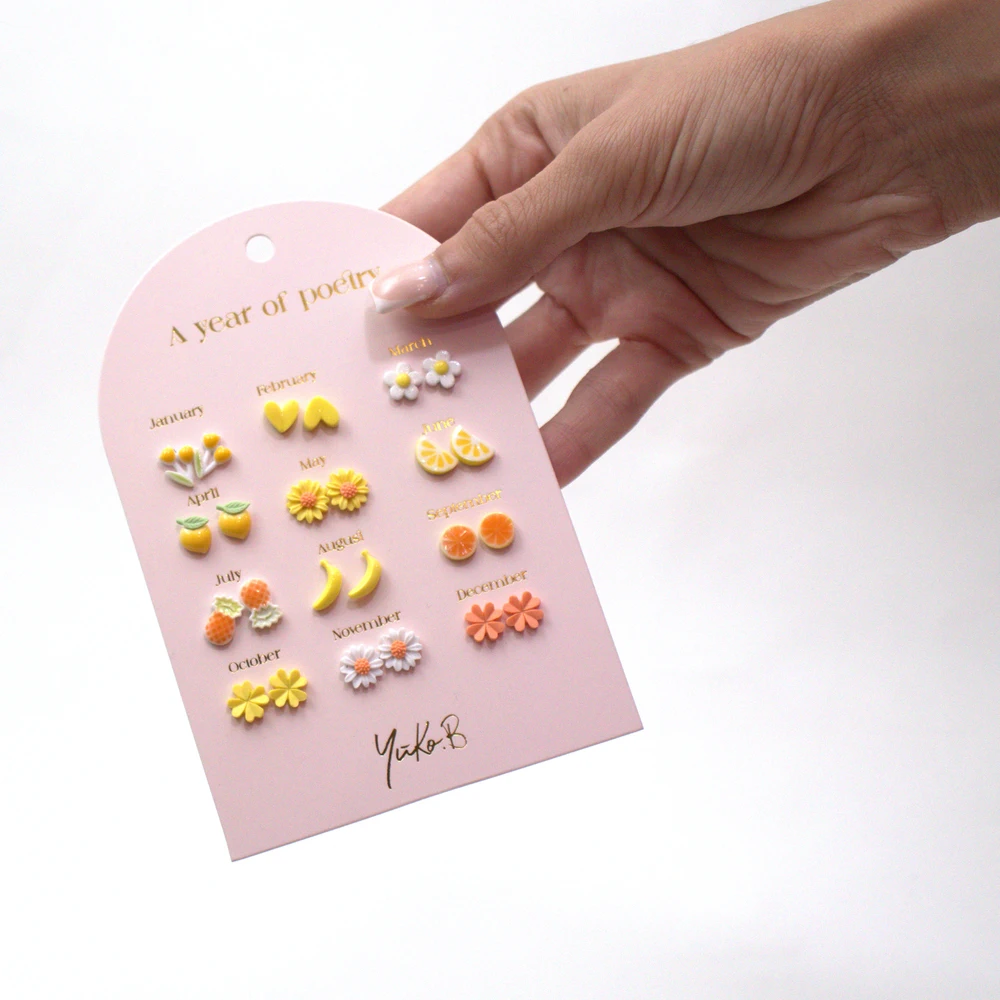 12 paires de boucles d’oreilles pour les gourmands de fruits. Une explosion de bonne humeur au quotidien !