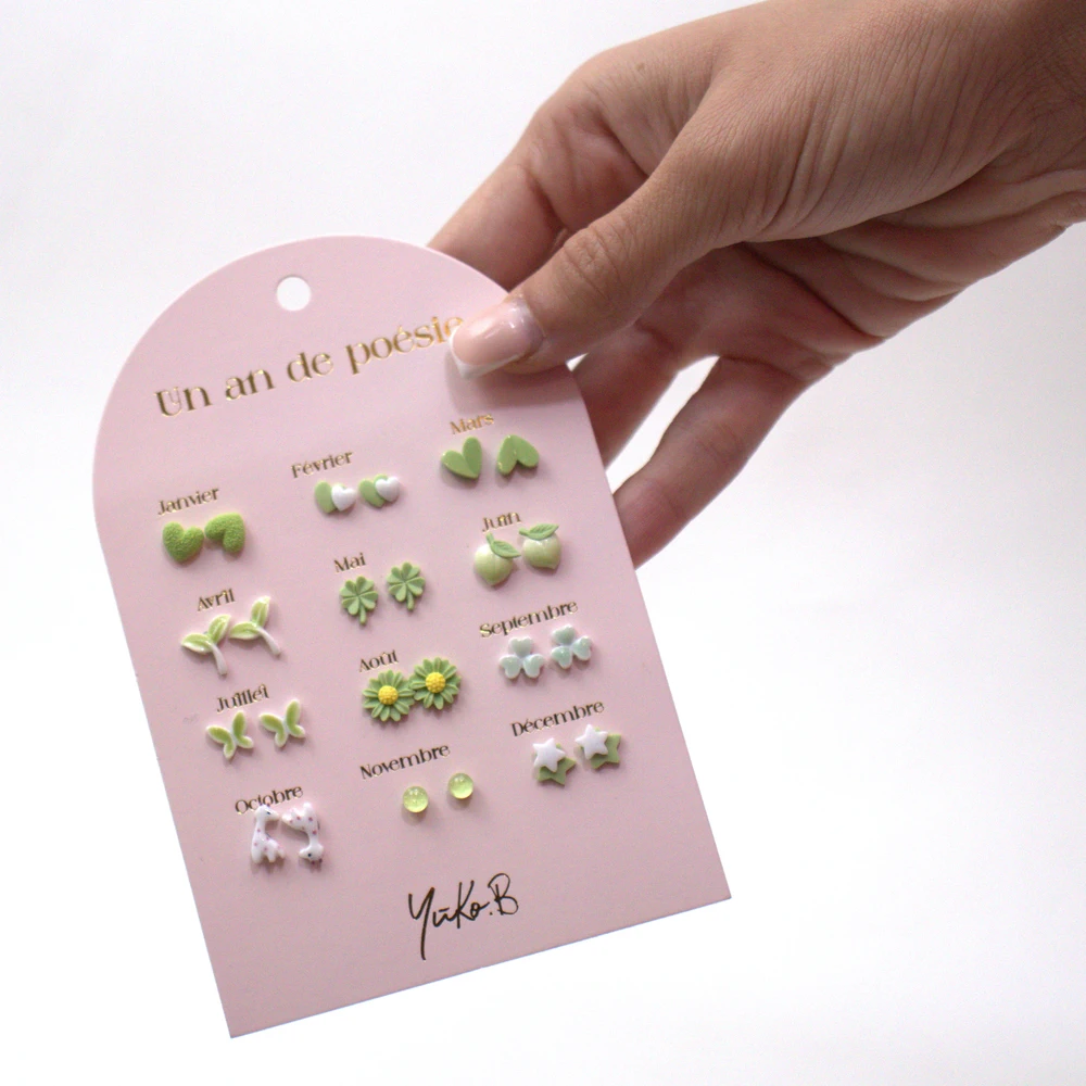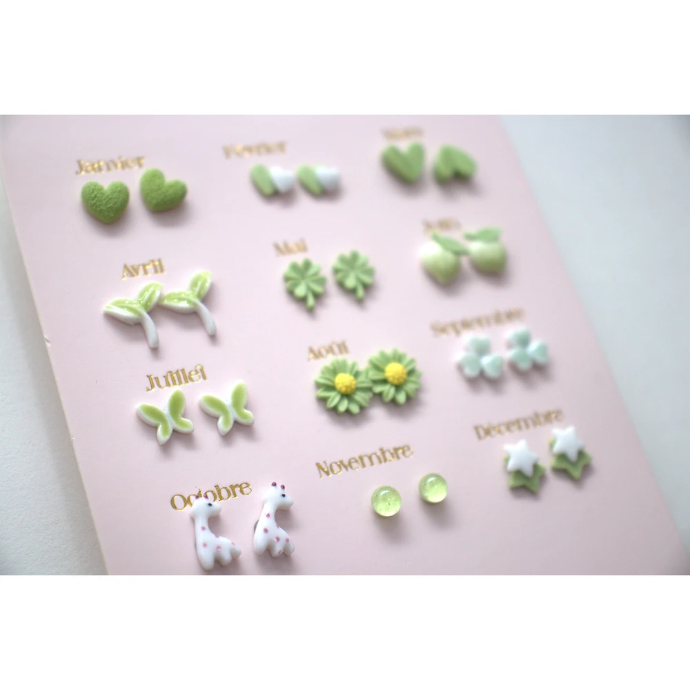 Découvrez des boucles d’oreilles pour chaque mois dans des tons vert et designs adorables.
