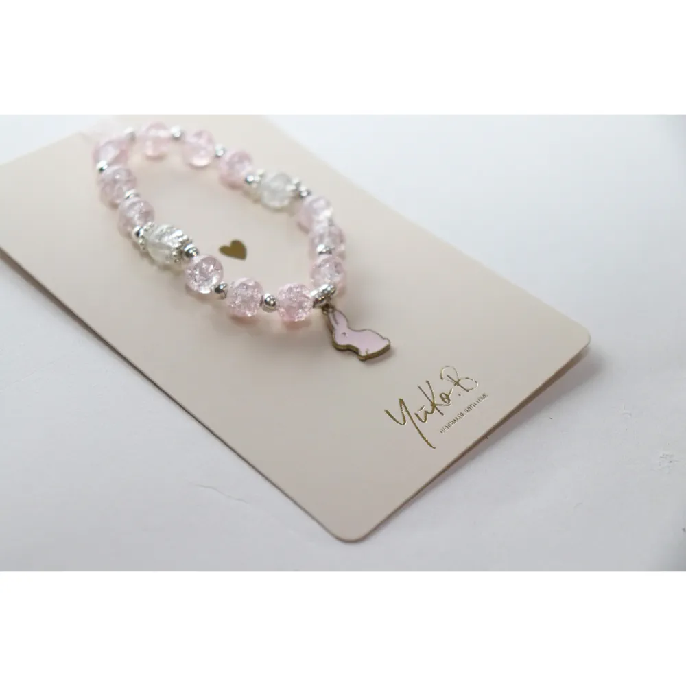 Chaque bracelet Yuko B est confectionné avec soin, dans des matériaux sûrs et adaptés aux enfants. Les perles brillantes captent la lumière et apportent une dimension féerique, tandis que le pendentif lapin aux détails finement travaillés stimule l’imaginaire et fait de ce bijou un véritable petit trésor à porter au quotidien.