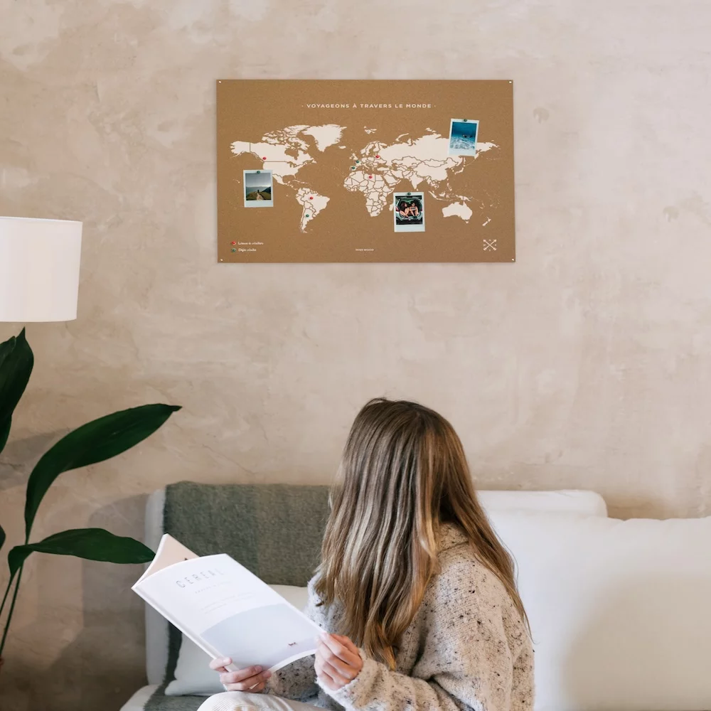 Félicitations, vous avez enfin trouvé la carte parfaite! Commencez à préparer les plus belles photos de votre dernier voyage et réfléchissez bien à la pièce dans laquelle vous allez la mettre, car elle deviendra votre nouveau coin préféré de la maison, et celui de vos invités. 100% fait-main à Barcelone. L’authentique carte du monde en liège.