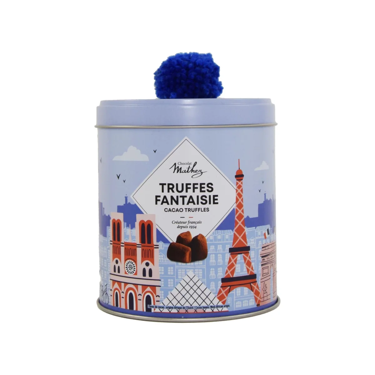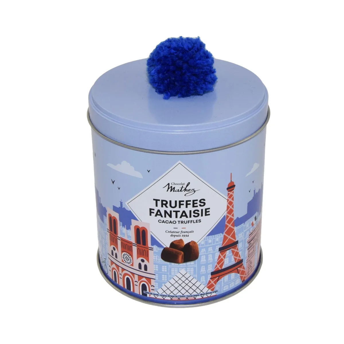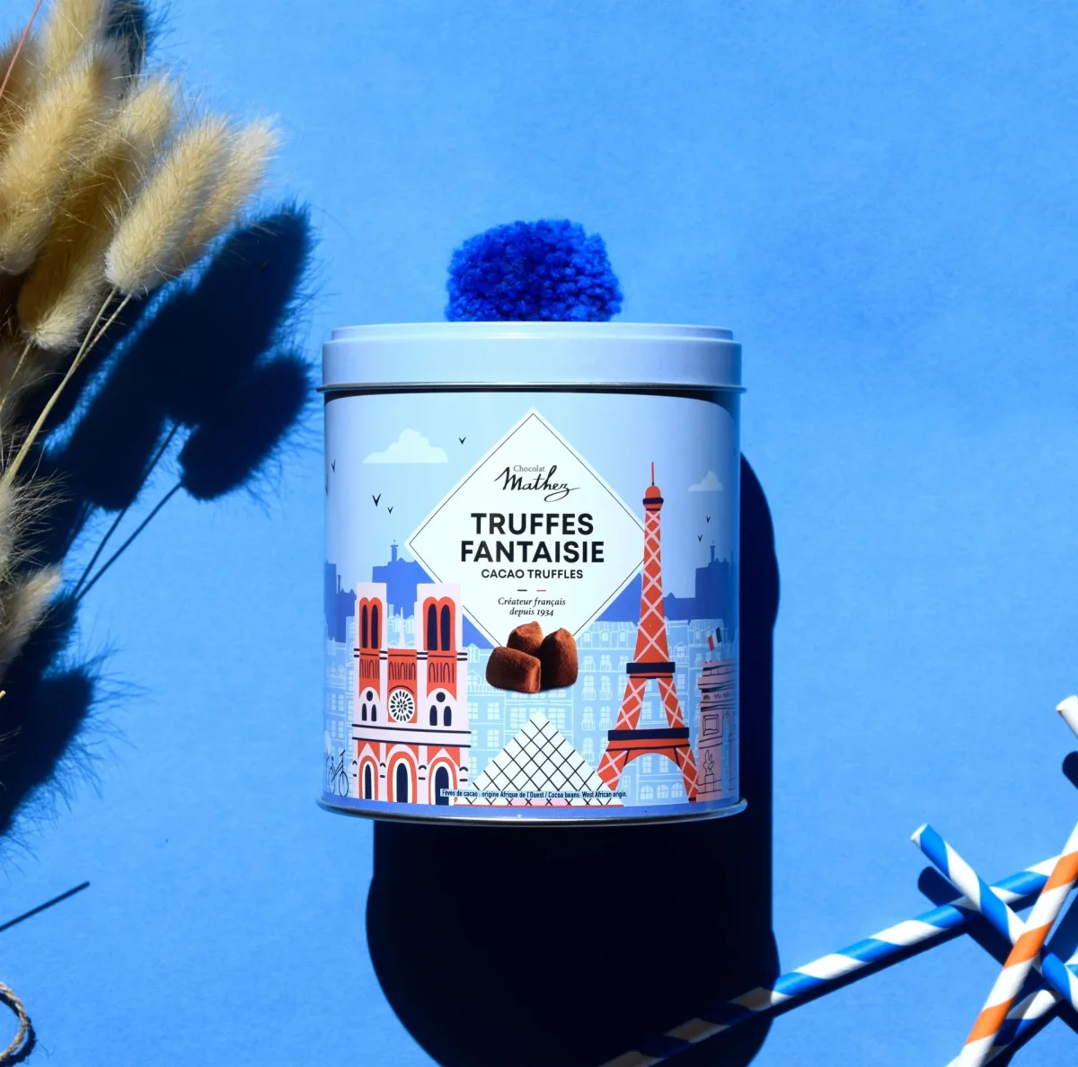 Quelle sera votre prochaine destination ? Envolez-vous vers Paris avec notre jolie boite métal «Travel» contenant 250 grammes de truffes. Agrémentée d’un pompon, au design très urbain et ornée des monuments touristiques Parisien, cette boîte séduit les amateurs de city-trip !