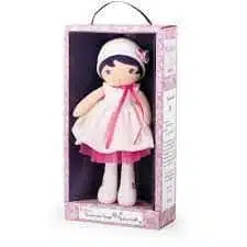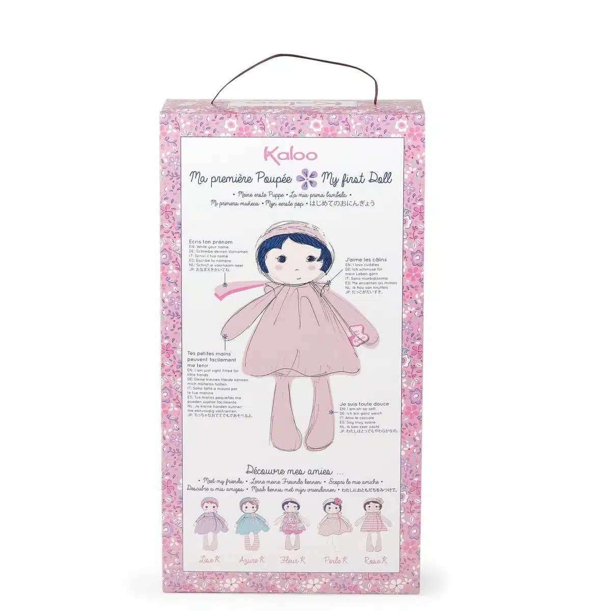 Perle K est toute de tendresse et délicatesse. La plus sage de la famille, elle est telle une princesse avec son jupon en tulle et sa jolie fleur à la tête. Souriante et bienveillante, elle sera toujours aux côtés de bébé pour la réconforter et la consoler lors de chagrins. L’emblématique ours Kaloo brodé aux pieds la rend d’autant plus précieuse. Un long ruban dans le dos permet d’y écrire le nom de bébé pour l’identifier facilement. Sa grande taille garantissent de vrais câlins tout doux. Poupée de 32 cm, présentée dans un joli écrin.