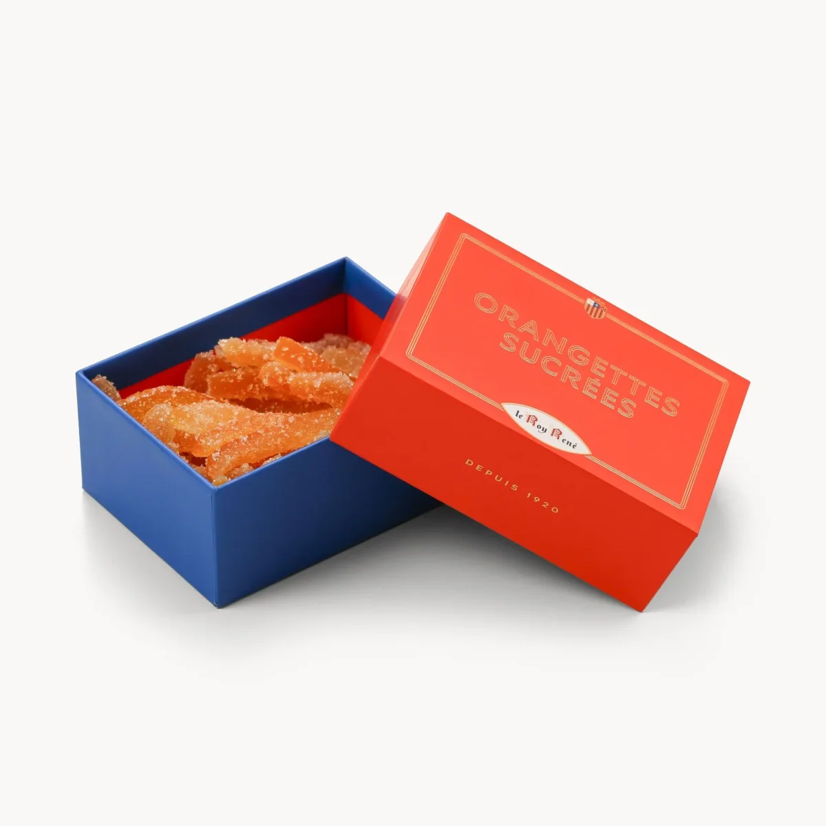 L’orangette sucrée est une confiserie réalisée à partir de fines lamelles d’oranges confites puis enrobées d’une fine couche de sucre cristallisé qui leur apporte un croquant délicat. Cette douceur séduit par son équilibre parfait : l’amertume subtile de l’écorce, la douceur du fruit et le craquant du sucre.