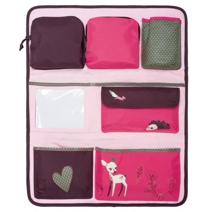 Ce compagnon de voyage avec son agencement bien structuré est pratique pour les trajets en voiture et indispensable pour les enfants et les parents. Grâce à une fixation simple au dos des sièges de voiture et à ses nombreuses poches fourre-tout fonctionnelles dotées de fermetures autoagrippantes et à glissière, les enfants ont tous les objets importants à portée de main : doudou, gourde, jouets et snacks.