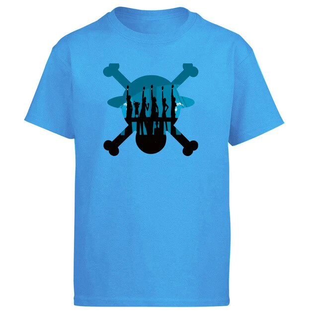 Affiche ton autorité avec ce t-shirt pirate bleu ciel, symbole de calme et de puissance. Son crâne imprimé rappelle que même en mer paisible, le danger n’est jamais loin.