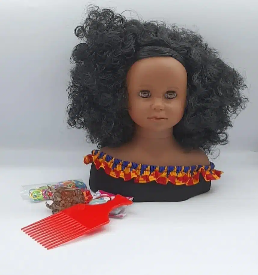Avec ses accessoires adaptés aux petites mains — peigne, pinces, élastiques, chouchous et barrettes décoratives — chaque séance devient un véritable atelier beauté. Votre enfant apprend à manipuler les cheveux, développer sa motricité fine, et laisse éclore son talent tout en s’amusant.