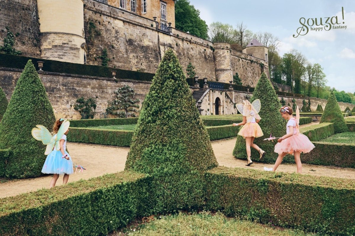 Ailes couleur saumon Marilea avec des détails dorés scintillants. La hauteur de ces ailes de fée est de 50 cm.