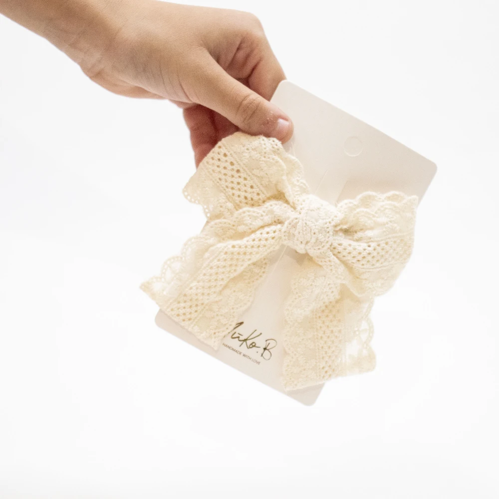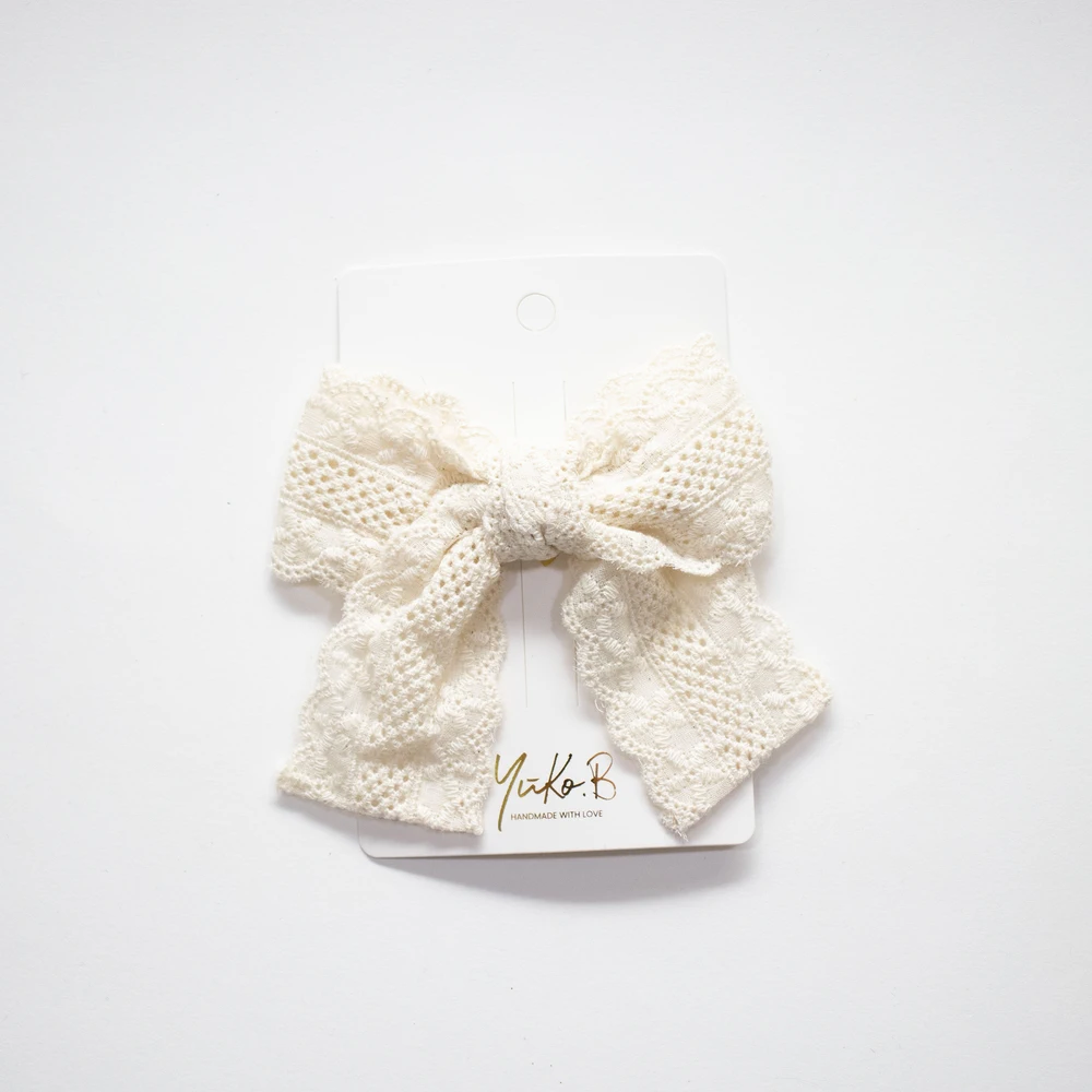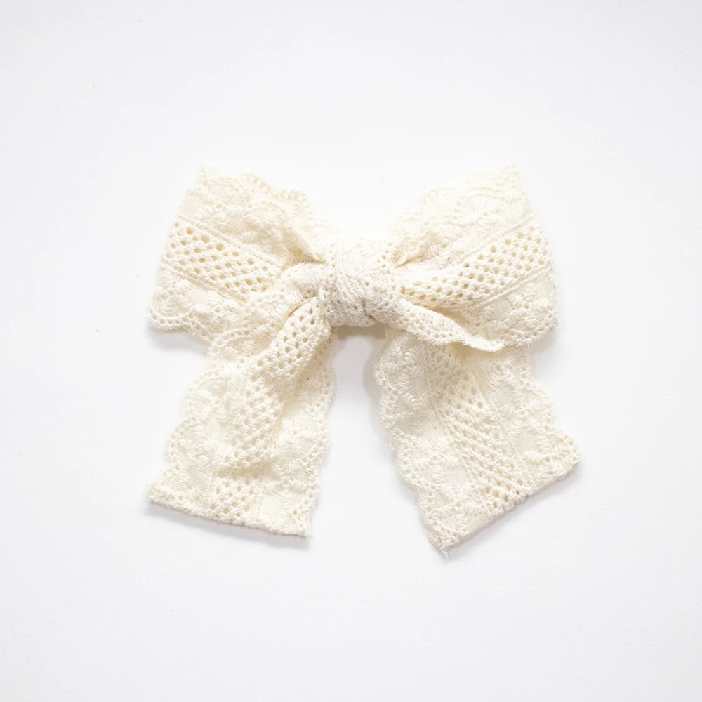 Une barrette noeud en dentelle écrue pour sublimer les coiffures des enfants.