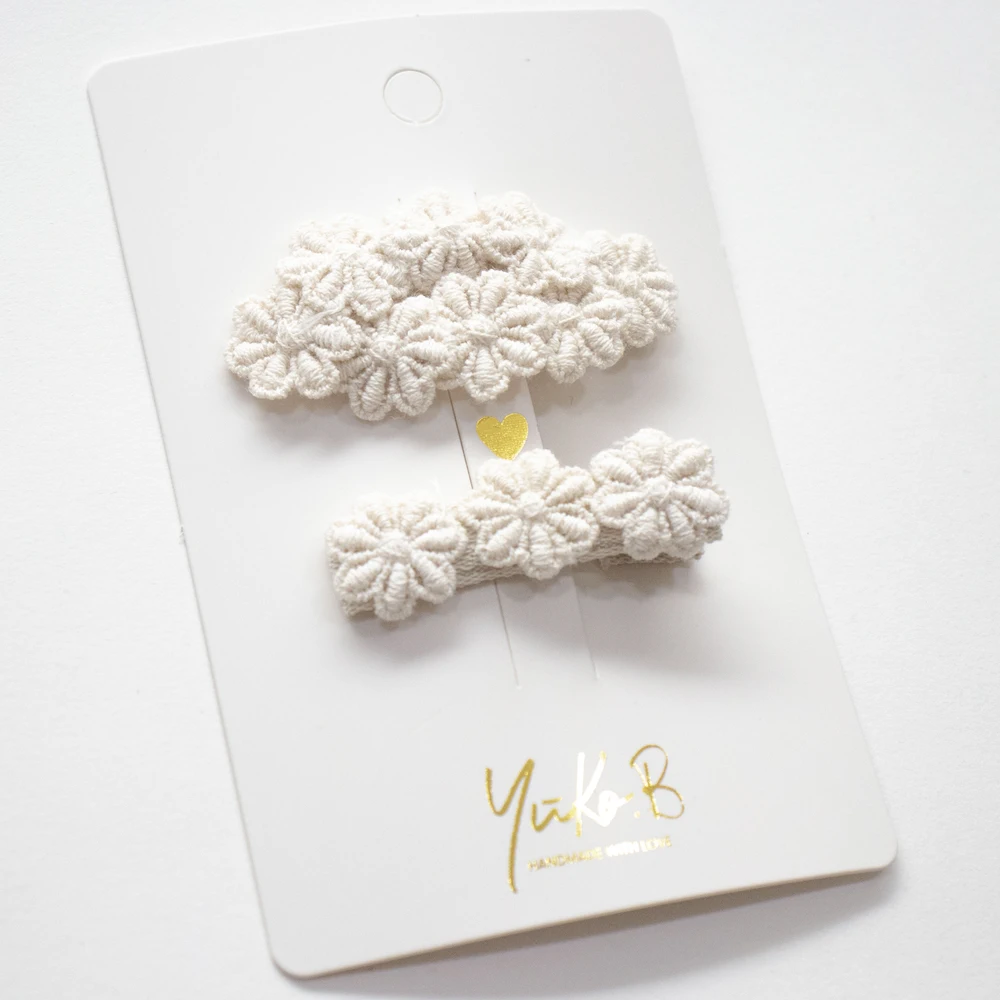 Duo de barrettes florales et délicates, idéal pour une cérémonie.