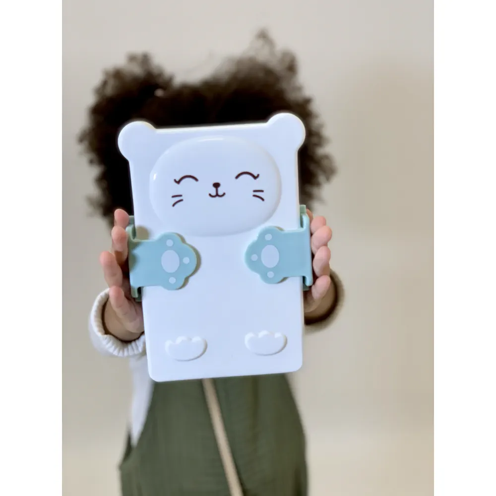 Craquez pour la fraîcheur et la fantaisie avec le bento en forme de chat Yuko.B. Avec sa jolie teinte pastel et sa petite frimousse de chat curieux, cette boîte repas séduit par son design à la fois tendre et original. Parfaite pour accompagner les repas des petits comme des grands, elle transforme chaque pause déjeuner en moment joyeux.