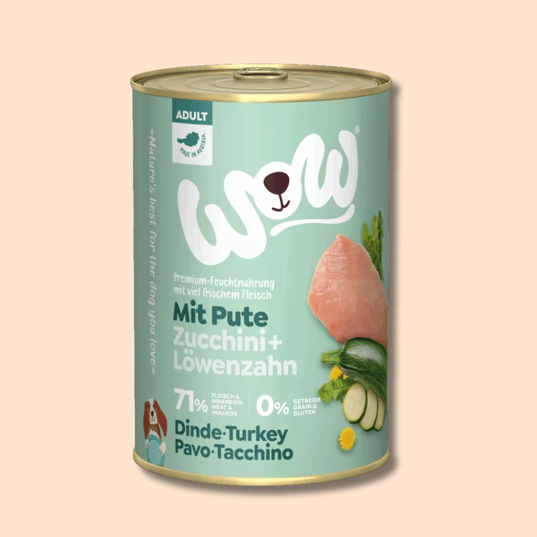 Pâtés -chiens adultes au Dinde, , courgettes et pissenlits WOW – 400 G