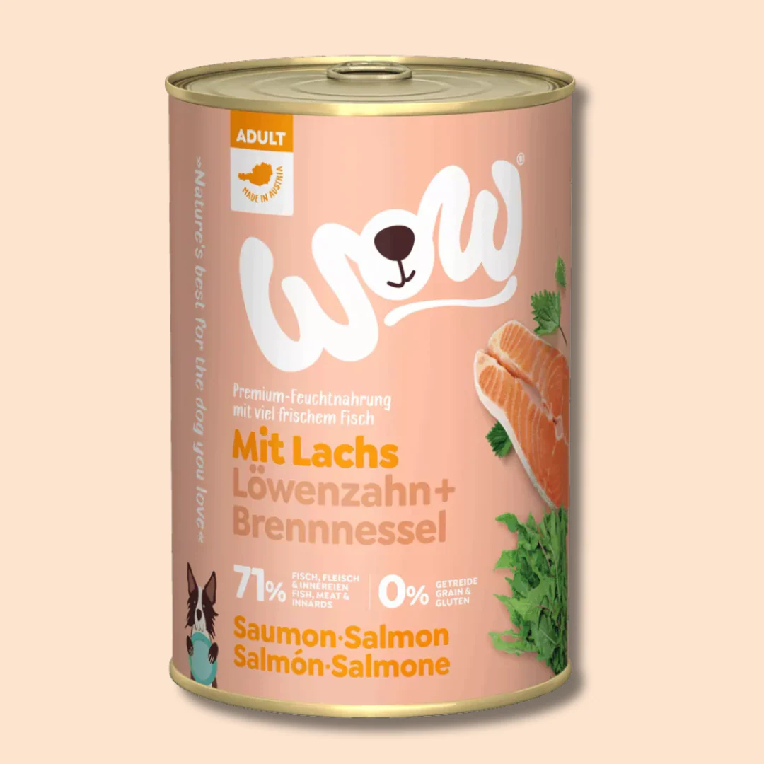 Offrez à votre chien un repas complet et équilibré avec la Pâtée WOW! au Saumon. Spécialement formulée pour les chiens adultes de toutes tailles et races, cette recette est riche en protéines de qualité et en nutriments essentiels. Avec 40% de poissons, dont 20% de saumon, et des ingrédients naturels comme les algues marines et les légumes, cette pâtée contribue au bien-être général de votre compagnon, favorisant une peau saine, un pelage brillant, ainsi que la santé des articulations et des muscles.
