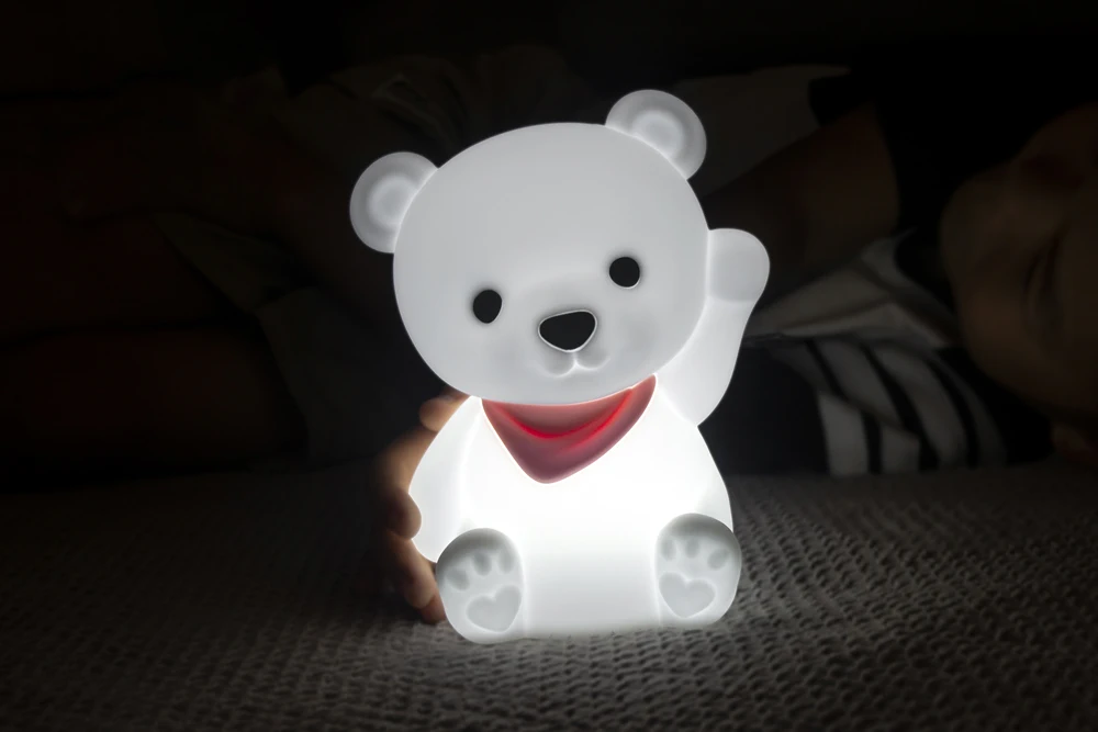 Jolie veilleuse rechargeable en forme d’ours Teddy blanc.