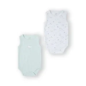 Lot de 2 bodies en coton bleu clair/écru – Noukies