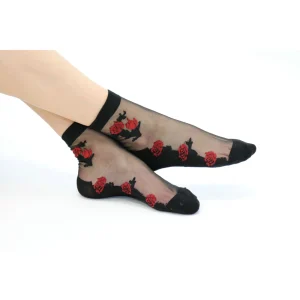 Cadeaux adultes, Chaussettes Kawaii, Fête des mères, Mode et Accessoires, Petits Prix, Saint ValentinYuko B. socks voile Kiss Me Noir & Rose